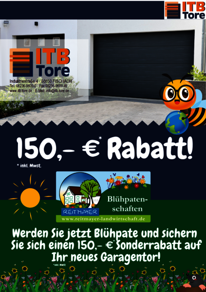 Werden Sie jetzt Blühpate bei Reitmayer Landwirtschaft in Gessertshausen-Deubach uns sichern Sie sich einen 150€* Sonderrabatt auf Ihr neues Garagentor!