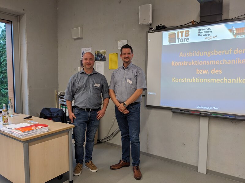 Am 07.05.2024 waren alle Schüler der 9. Und 10. Klassen der Grund und Mittelschule Fischach zu einem Berufsinformationsabend eingeladen. Mit den Eltern konnte man sich bei Vorträgen über die Ausbildungsmöglichkeiten bei verschiedenen Firmen Informieren. Da darf ITB natürlich nicht fehlen – Herr Markus Kern und Herr Alexander Lehmann stellten den interessierten Jugendlichen den Beruf des Konstruktionsmechanikers vor.