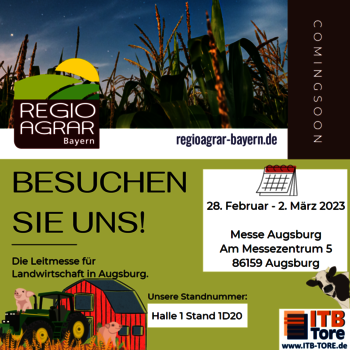 Vom 28.02.2023 bis zum 02.03.2023 sind wir auf der RegioAgrar Bayern 2023 Fachmesse vertreten.