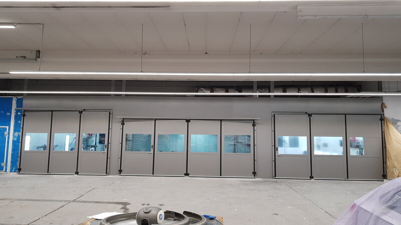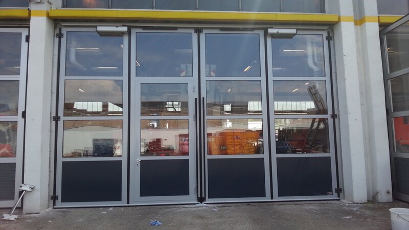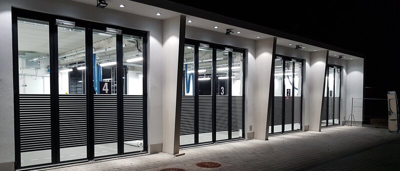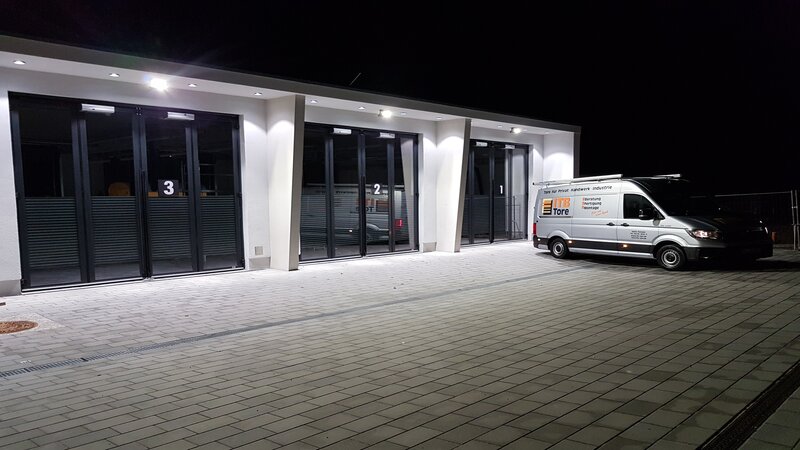 Dabei sind natürlich auch verschiedenste Antriebs- und Steuerungsmöglichkeiten jederzeit mit dem Falttor kombinierbar. Durch das Falten der Flügel nach außen oder innen können wir das ITB-Falttor selbst bei schwierigsten Einbausituationen noch einsetzen.